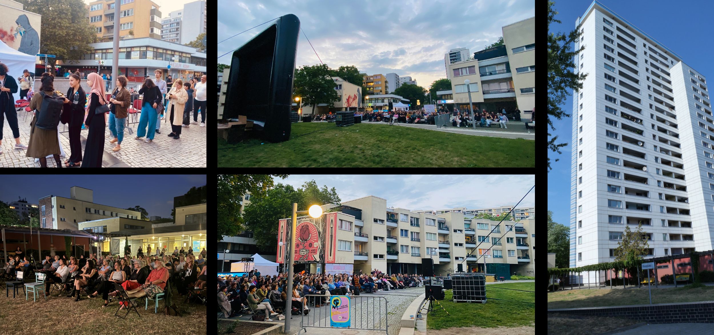 Die einen sagen sozialer Brennpunkt – wir sagen sozialer Treffpunkt: Mitten in Berlin liegt der Mehringplatz und genau dort machen wir im nunmehr sechsten Jahr unser Open-Air-Kino. Der Platz liegt im Herzen der Stadt, hat als Belle-Alliance-Platz im 18. Jahrhundert Geschichte geschrieben, wurde im Zweiten Weltkrieg nahezu vollständig zerstört und in den Sechzigerjahren von Architekt Werner Düttmann unter Auflagen für den sozialen Wohnungsbau neu gestaltet. Heute, sechzig Jahre später, kennt kaum jemand diesen Platz in Kreuzberg, an dem knapp 7000 Menschen leben. Um das zu ändern, bringen wir im sechsten Sommer Filme auf die Leinwand, Stars auf die Bühne und Leben in diesen toten Winkel. Drei Sommernächte mit Freude, Impulsen und Begegnung gefüllt. Ein sorgfältig kuratiertes Programm steht den Anwohnenden und Gästen, die den Platz endlich einmal kennenlernen sollen zur Verfügung. Umsonst, draußen und von ganzem Herzen. Im Südwesten Berlins liegt die Thermometersiedlung, die seit zwei Jahren ebenfalls zu unserem zweiten Open-Air-Kino- Zuhause geworden ist.